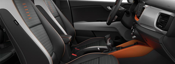 Yeni Kia Rio ile aynı platformdan çıkan Stonic o oldukça sevilen yüksek sürüş keyfine yeterince sahip görünüyor. Eteklerde yer alan kaplamalar ile tavan rayları aracı daha heybetli gösterirken aynı zamanda sağlamlık hissi uyandırıyor. “Kaplan burnu” ızgara yapısı ile farları uyum içinde olan araçta, Desing paket ile tavan renklerini de zıt oluşturacak renkler ile bütünleştirebiliyorsunuz. 20 farklı renk iki farklı renk kombini mevcut.