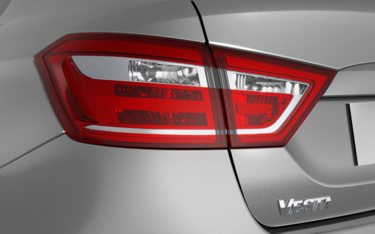 LADA Vesta şık, hızlı hareket eden, parlak - yeni nesil bir LADA otomobilinin olması gerektiği gibi. Bir sedanın silueti tek bir "X" konseptinde tasarlanmış ve uyumlu ve modern görünüyor. Yeni kurumsal kimlik, ayrıntılarla kolayca tanınabilir: koyu renkli radyatör ızgarası, yanları delme, arka ışık yansıtıcıları. Yükseltilmiş pencere çizgisi, uzun başlık ve eğimli tavan nedeniyle, araba dinamik ve atletik görünüyor.