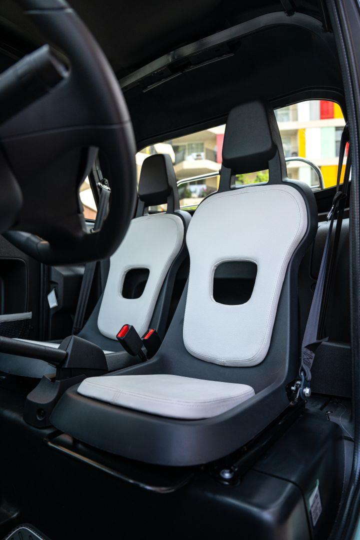 Topolino, Fransız ve Alman kardeşleri gibi iki yolcu için alan sunuyordu. Bunlardan farklı olarak, yastıklı plastik koltuklara sahipti. İtalyan otomobil üreticisi, sürücünün önüne, 1957 Fiat 500 gösterge panelinin tasarımına benzeyen bir kümeye yerleştirilmiş küçük bir dijital ekran yerleştirdi. Ayrıca, müşteriler bir USB soketine takılı bir hoparlör veya fan takabiliyordu. Araçta bilgi-eğlence sistemi yoktu. Yine de, müşteriler akıllı telefonlarını bunun için özel bir uygulama ile birlikte kullanabilirlerdi. Dört tekerlekli aracın yerleşik bilgisayarı tarafından sağlanan daha fazla veriye erişmek için aynı USB portu üzerinden bağlanabilirdi.