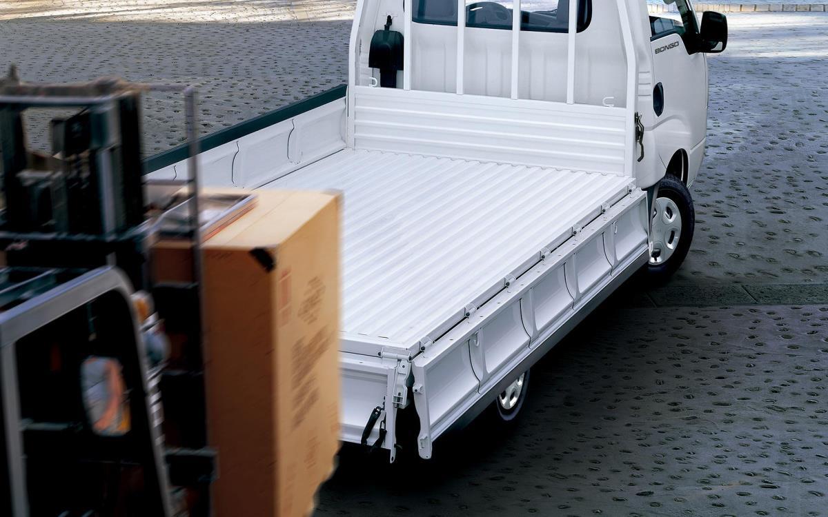 Kia Bongo, yuvarlak kenarlı kasa kapakları, köşeli tasarımlara göre daha kolay yükleme hacmi ve boşaltma yapmanıza yardımcı olur ve üstelik çok daha iyi dayanıklıdır.