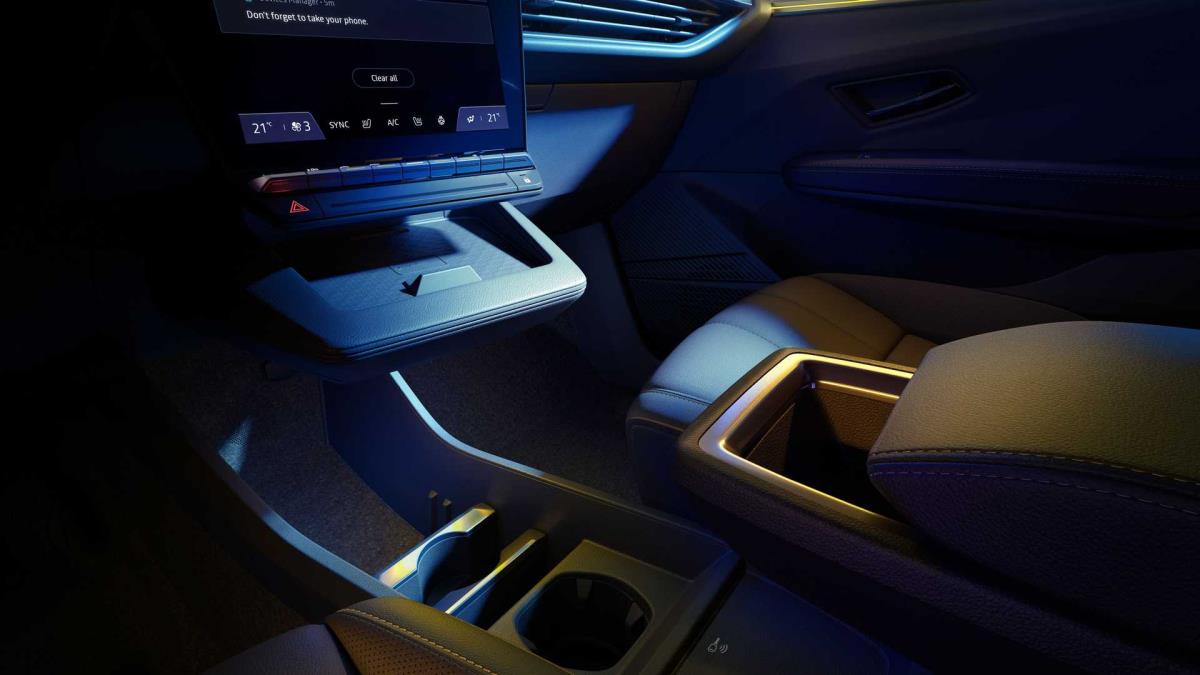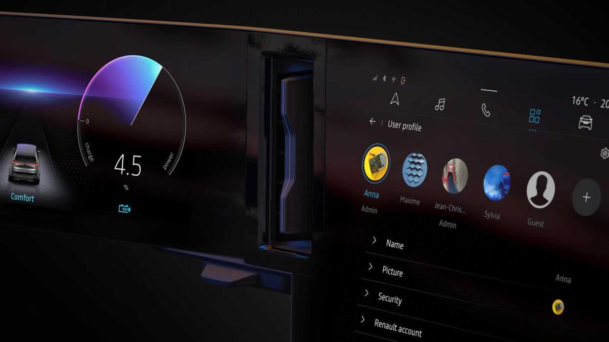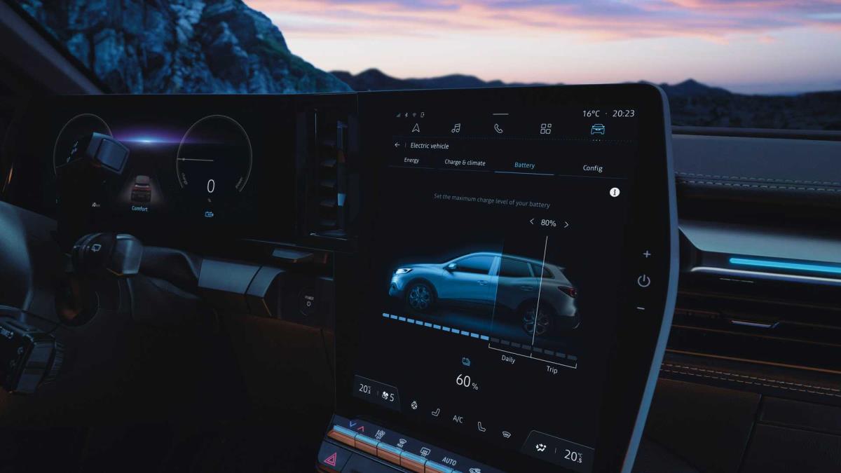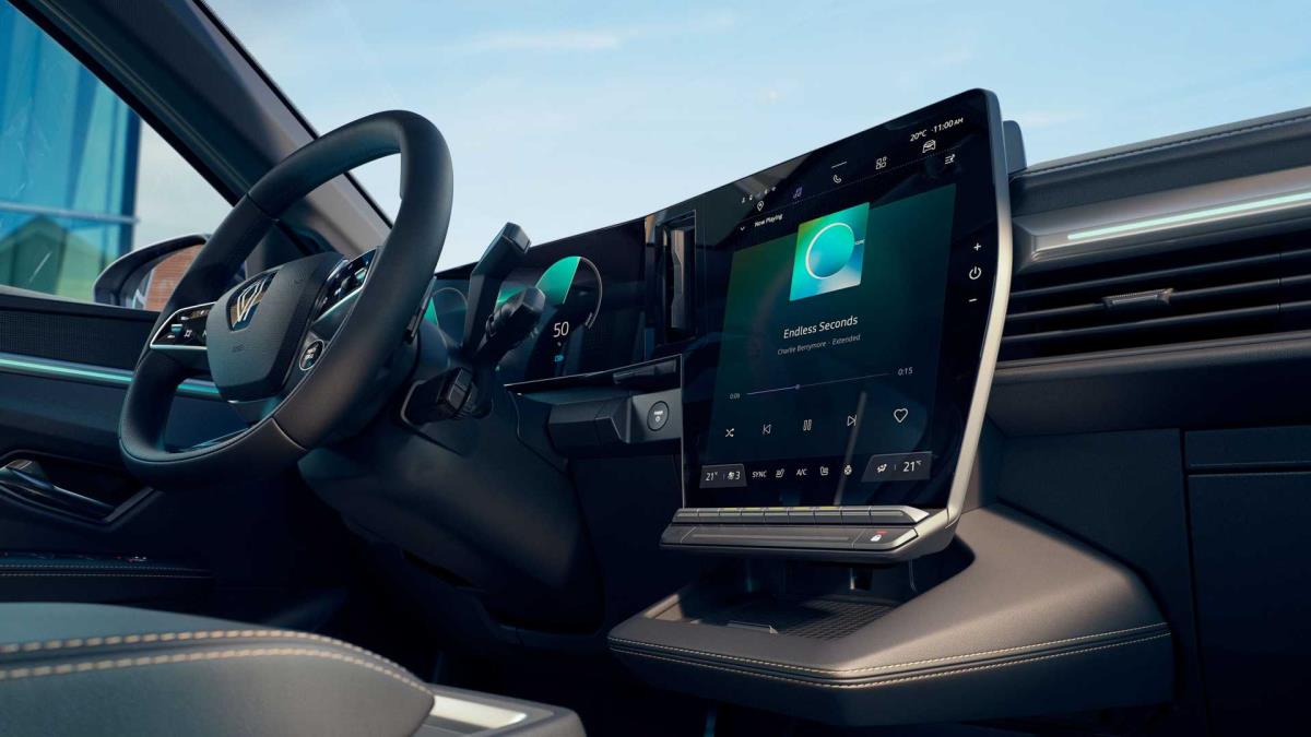 Kabin içerisinde, Fransız tasarımcılar kokpit koltuğuna doğru kavisli kare, geniş bir panele yer verdi. Direksiyon simidinin önünde dijital bir gösterge paneli ve orta konsolun üzerinde uzun, portre modu ekranı sunuyor. Bu dokunmatik ekranın hemen altında birkaç fiziksel buton belirdi. İletim tünelinin olmaması sayesinde de Renault düz bir zemin oluşturmayı başardığını görüyoruz. Ayrıca, yolcularının ayaklarının altında, CMF-EV platformunda 110 mm daha ince bir batarya ünitesi yer alıyor.